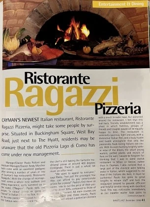 For years, Andi and Paolo worked in Europe and then in Cayman, building up their ideas and doing their research, always knowing that their dream would be to one day open an exceptionally good Italian restaurant – a place where customers want to return again and again. In the summer of 1999 their dream became a reality and Ragazzi Ristorante and Pizzeria was opened.